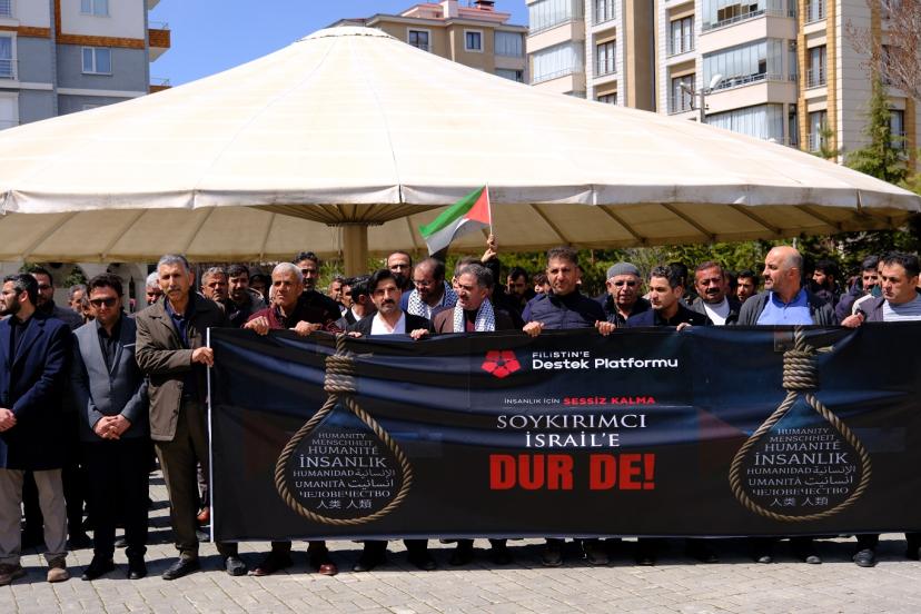 Platform adına basın açıklamasını okuyan Memur-Sen Van Şube Başkanı Mehmet Ali Uca, “Tüm değerlerin yok sayıldığı, çiğnendiği bir zaman diliminden geçmekteyiz.  İnsanlık adeta azgın ve sapkın bir ideoloji tarafından ne yazık ki rehin alınmıştır. Biz eser değiliz, bu esaret girişimine karşı kayıtsız kalacakta değiliz. Siyonist rejim şunu bilsin ki; zalimlerin topuna, canımızla, başımızla, elimizle aşımızla, varımızla yoğumuzla direneceğiz. Siyonist israil rejimi tarafından, Gazze’de işlenen soykırımın kahredici acısı vicdanlarda canlı dururken, Lübnan’da ve İran’da ortaya konan yeni vahşetler insanlığı bir kez daha derinden sarsmaktadır. 165 İranlı öğrencinin, siyonist rejim tarafından okul sıralarında katledilmesi ve bu katliamın küresel vicdanda yeteri kadar yer bulmaması bizleri derinden sarssa da, bugün burada olduğu gibi dünyanın dört bir yanından yükselen itiraz sesleri bir nebze olsun umudumuzu yeşertmektedir.” dedi.