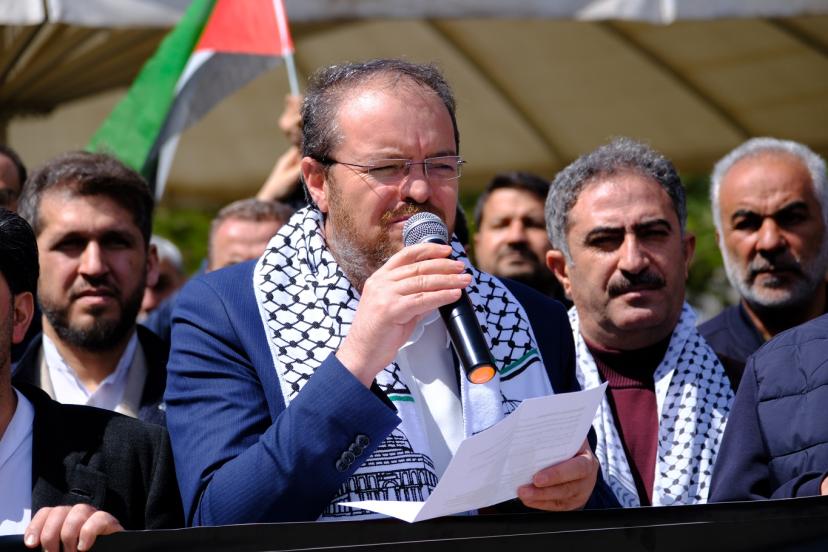 Filistinli esirlerin idam edilmesini onaylayan yasanın açık bir hukuk ihlali olduğuna dikkati çeken Uca, “Açıkça ifade etmek gerekir ki; israilin Filistinlilere karşı idamı yasallaştırması tam bir vahşet, açık bir hukuk ihlalidir. İşgal ettikleri toprakların gerçek sahiplerini ipe götürmeye cüret etmek demek, kendi ipini çekmekten, terör devletinin kaçınılmaz sonunu hazırlamaktan başka bir şey değildir. Bu adımın Nazi zulmünden hiçbir farkı yoktur. Bu zulme imza atanlar ve her şey olurken sessiz kalanlar muhakkak ki, Hitler ile aynı akıbeti yaşayacaktır. Yine; Mescid-i Aksa’nın ibadete kapatılması İslam’ın ve Müslümanların izzetine yapılmış bir saldırıdır. Ortaya konulan bu cürümlere karşı mücadelemiz kıyamete kadar devam edecektir. Filistin mücadelemizde önden gidenlere selam olsun.” şeklinde konuştu.