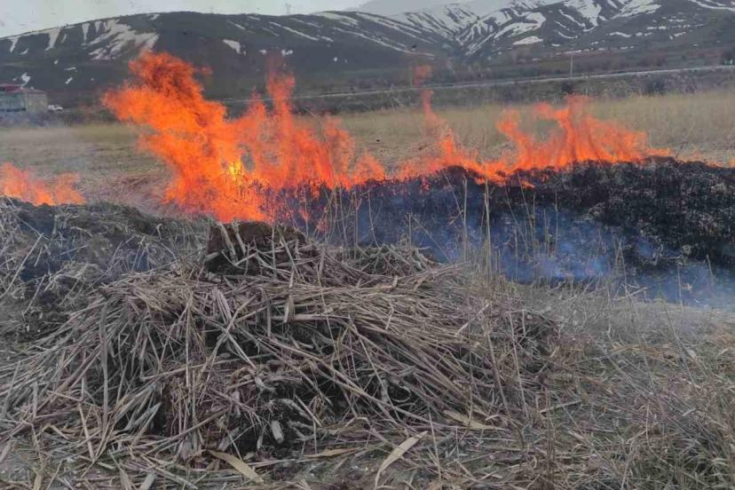 Van’ın Gevaş ilçesinde anız yangını