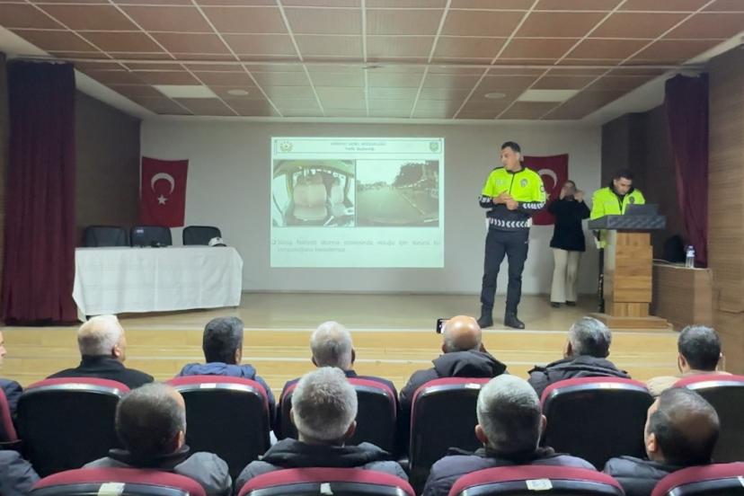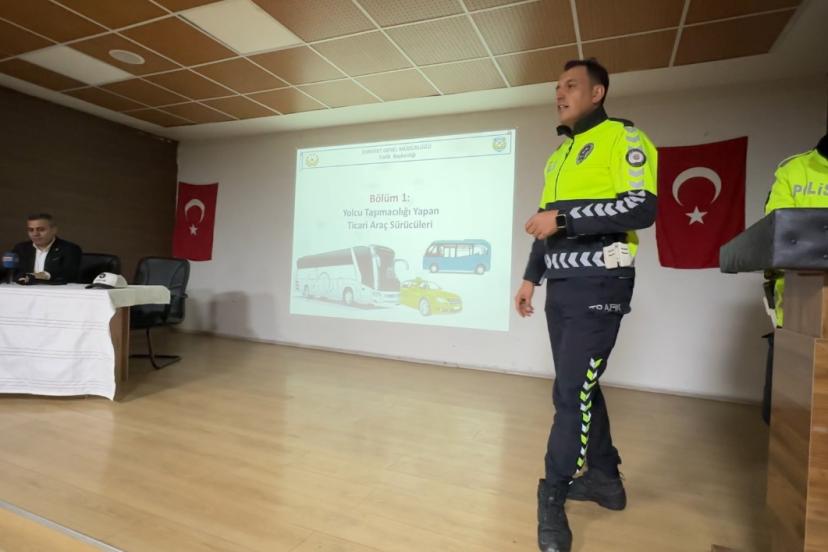Görevli polis memurları, şoförlerin sadece birer sürücü değil aynı zamanda ilçenin trafik elçileri olduğunu vurgulayarak, kurallara azami hassasiyet gösterilmesini istedi.