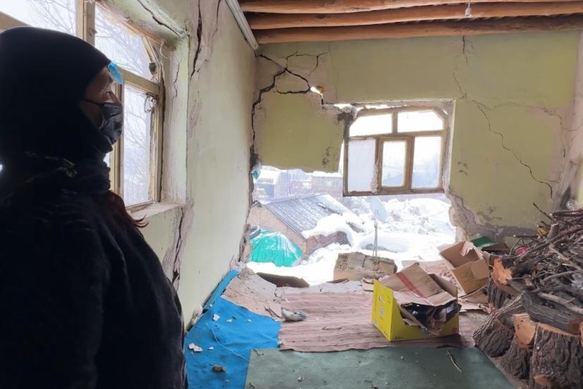 Yoğun kar yağışının etkili olduğu Hakkari’nin Yüksekova ilçesinde bir evin duvarı çöktü. Uykusunda yakalandığı felaketi deprem zannederek büyük korku yaşayan Pirüze Bala, kış ortasında evsiz kaldı.