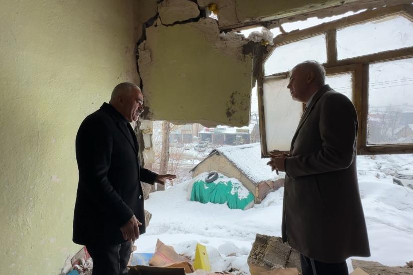 İlçenin İpek Mahallesi Sanayi Caddesi’nde 3 gün önce sabah saatlerinde Piruze Bala’nın tek başına yaşadığı toprak evde çökme meydana geldi. Şans eseri yaralananın olmadığı olayda, kış ortasında evsiz kalan yaşlı kadının yardımına devlet kurumları yetişti. Yüksekova Kaymakamı Mustafa Akın, beraberindeki heyetle birlikte olayın yaşandığı bölgeye giderek Bala’ya geçmiş olsun ziyaretinde bulundu. Hakkari Valisi Ali Çelik’in selamlarını ileten Akın, evin durumu hakkında yetkililerden bilgi aldı.