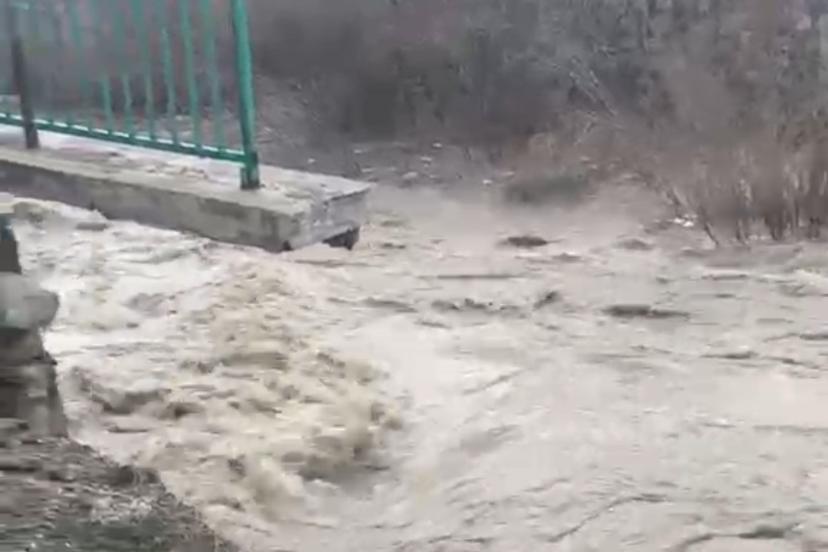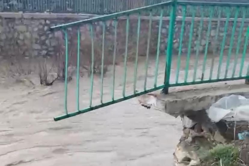 Hakkari’nin Yüksekova ilçesinde şiddetli sağanak ve karların erimesi sonucu debisi yükselen derenin kenarındaki istinat duvarı çöktü.