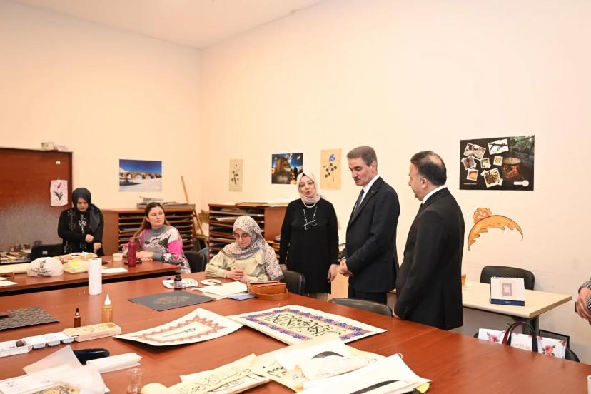 Vali Aydın Baruş, İl Kültür ve Turizm Müdürlüğünde aldığı brifingin ardından kurs odalarını ziyaret etti. Ziyaret kapsamında; el sanatları, ebru, tezhip, saz, gitar, ney, Kur’an-ı Kerim, keman, piyano ve Hüsn-i Hat kursları incelendi, kursiyerlerle bir araya geldi.