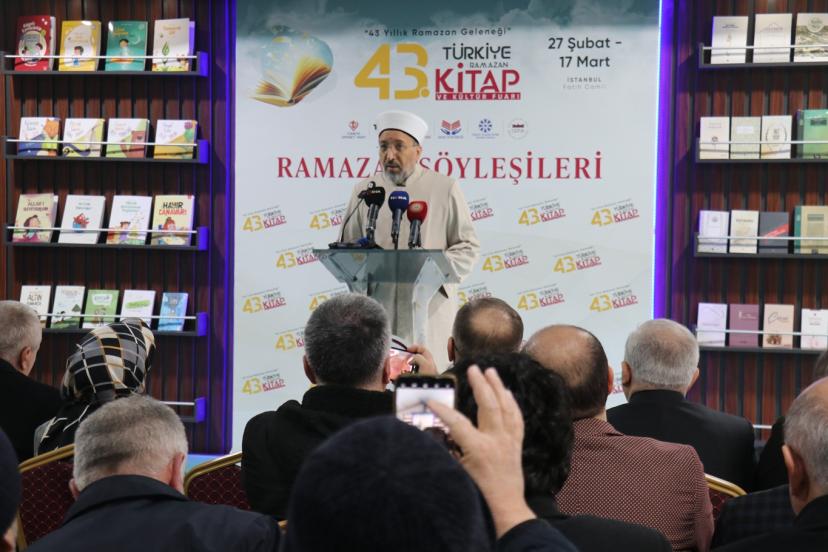 Fuarın açılışında konuşan Diyanet İşleri Başkanı Prof. Dr. Safi Arpaguş, "Bugün burada, '43. Kitap ve Kültür Fuarı'nın açılışı için bir aradayız. Malum olduğu üzere medeniyetimiz kitap medeniyetidir. İlim, irfan ve hikmet medeniyetidir. Zira medeniyetimize kaynaklık eden en temel unsur, ilk emri 'Oku' olan yüce bir kitaptır. O kitap bütün kitapların onun anlaşılması için kaleme alındığı, içinde bulunduğumuz bu mübarek ayda indirilmiş olan Kur'an-ı Kerim'dir. Yeryüzünde kitabın serüveni ilahi hitapla başlamıştır. İnsanlığı kitap ile tanıştıranlar da bu ilahi hitabın muhatabı olan peygamberlerdir. Cenab-ı Hak insanı yaratmış, ona kendi içlerinden seçip gönderdiği, kitabı ve hikmeti öğretecek peygamberler vasıtasıyla eşyanın hakikatini, varlığın hikmetini anlatan hidayet kaynağı kitaplar gönderrmiştir. Hazreti  Adem'den Hazreti Hatemü'l-Enbiya Efendimiz (Sallalahu Aleyhi Vesellem)'e kadar peygamberler vasıtasıyla insanlığın yolunu ve ufkunu aydınlatmış, onları hak ve hakikat ile buluşturmuştur. Bu silsilenin son ve cihanşümûl halkası olan kitap ise tüm insanlığı ilme, hikmete ve tefekküre davet eden aziz kitap, Kur'an-ı Kerim'dir.  Dolayısıyla bir kitap, ancak Kur'an'ın işaret ettiği ufku takip ettiği sürece hakikate yaklaşacak ve okuyucusunu hakikatle buluşturabilecektir." dedi.
