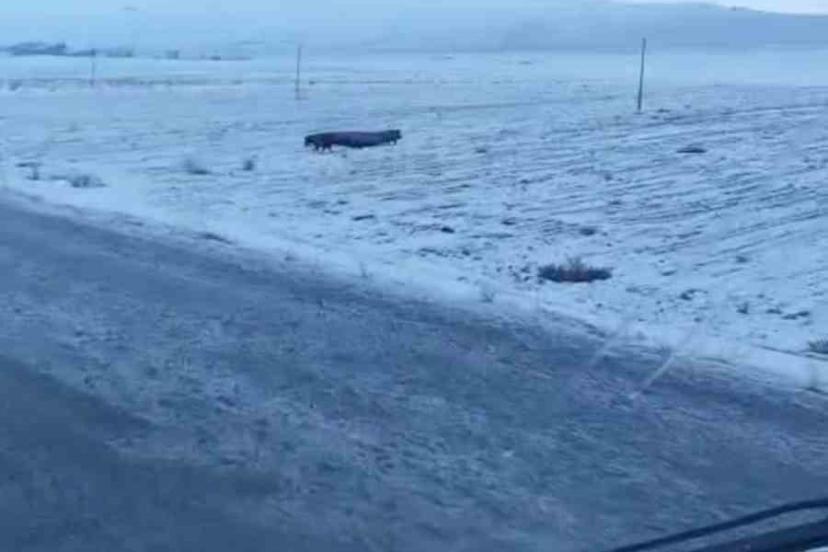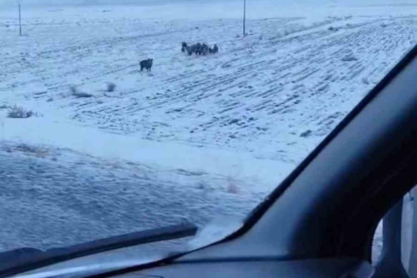 Bitlis’in Adilcevaz ilçesinde yol kenarındaki tarlada gezen domuz sürüsü cep telefonlarıyla görüntülendi.