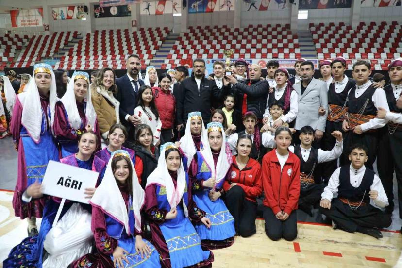 Gençlik ve Spor Bakanlığınca düzenlenen Okul Sporları Halk Oyunları Gençler Kategorisi Doğu Anadolu Grup Yarışmaları’nda Ağrı...