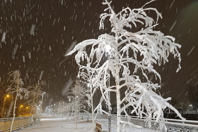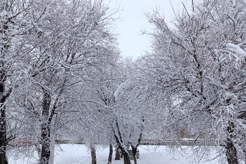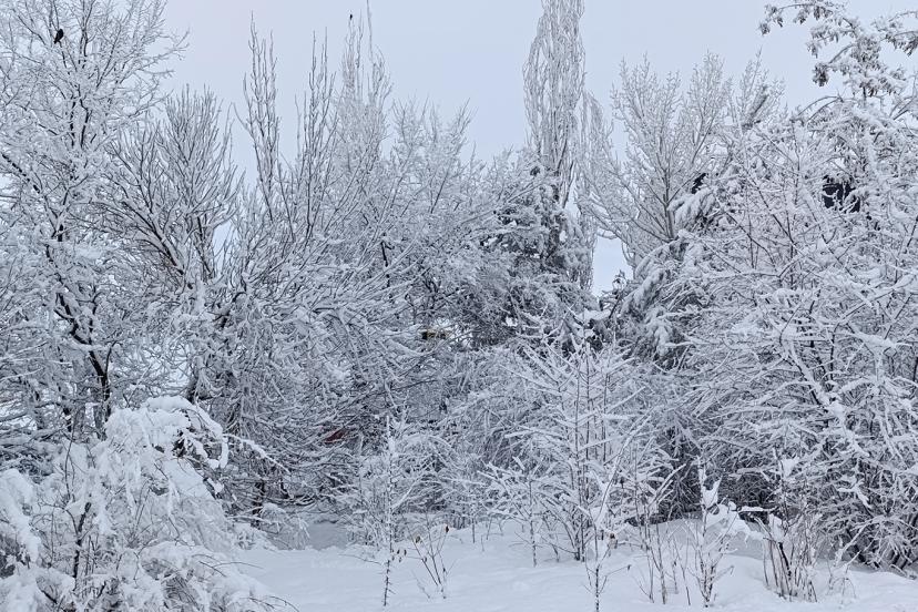 Ağaç dallarının üzerinde biriken karlar seyirlik görüntüler oluşturdu.