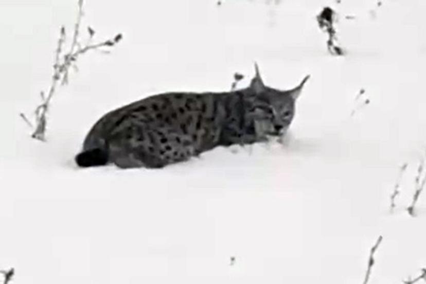 Görüntülerde, vaşağın oldukça bitkin olduğu ve çevredeki hareketliliğe rağmen kaçacak gücü bulamadığı dikkat çekti. Bir süre koştuktan sonra nefeslenmek için duran vaşak, içgüdüsel olarak karların arasına yatarak kendini gizlemeye çalıştı.