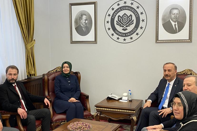 AK Parti Genel Başkan Yardımcısı Fatma Betül Sayan Kaya, çeşitli temaslar ve ziyaretlerde bulunmak üzere Isparta'ya geldi. Genel Başkan Yardımcısı Kaya ilk olarak geçen hafta Katar- Türk Birleşik Müşterek Kuvvet Komutanlığı bünyesinde eğitim faaliyeti yürüten helikopterin kaza kırıma uğraması sonucu şehit olan Hava Savunma Binbaşı Sinan Taştekin'in ailesine ziyarette bulundu. Anne Sezen Taştekin ve baba Ali Taştekin ile diğer yakınlarına taziye dileyen Genel Başkan Yardımcısı Kaya'ya Isparta milletvekilleri Mehmet Uğur Gökgöz ve Osman Zabun, Isparta Belediye Başkanı Şükrü Başdeğirmen ile AK Parti İl Başkanı Furkan Cem Er de eşlik etti. Beraberindeki heyetle AK Parti İl Başkanlığı'nı ziyaret eden Fatma Betül Sayan Kaya sonrasında ise Isparta Valiliği'ne geçti. Vali Abdullah Erin tarafından karşılanan Kaya, Valilik Şeref Defterini imzaladı.