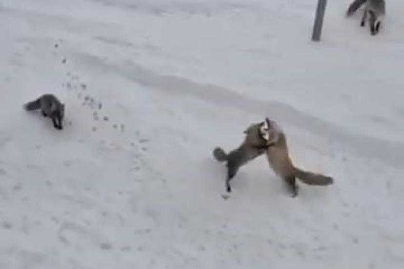Karayolları personeli tarafından beslenen tilkiler, kendi aralarında ekmek kavgasına düştüler. Uzun bir süre kavga eden tilkiler daha sonra verilen yiyecekleri yemeye başladı. Bu güzel anlar ise cep telefonu ile kayda alındı.