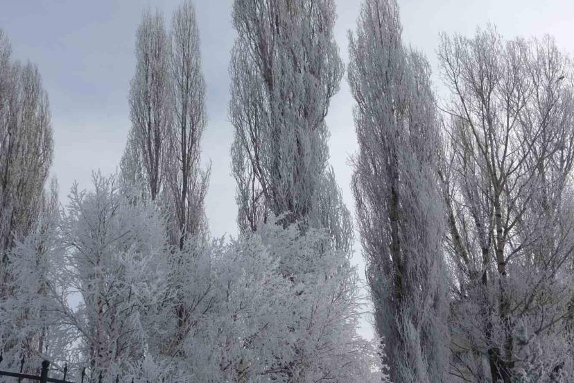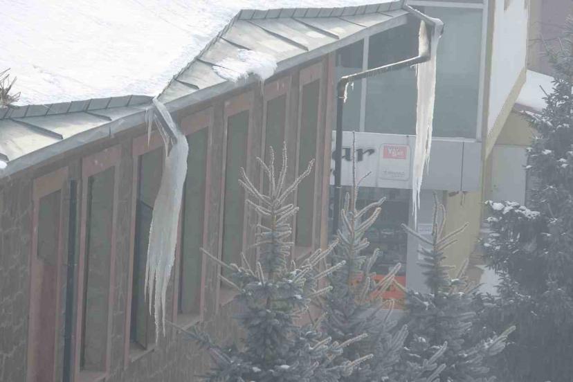 Ardahan’da soğuk hava yüzünden ağaçlar kırağı tutarken, çatılarda buz sarkıtları oluştu.