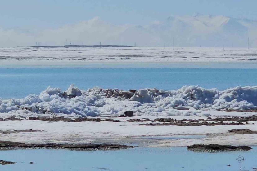 Bölgede son günlerde etkili olan ılık hava ve kuvvetli rüzgâr, göl yüzeyindeki buz tabakasını parçaladı. Parçalanan buz kütleleri dalgalarla birlikte kıyıya sürüklendi. Bazı noktalarda buz yığınlarının yüksekliği bir metreyi aşarken, sahil şeridinde ilginç görüntüler oluştu. Fotoğraf tutkunları ve doğaseverler bölgeye gelerek buzların oluşturduğu doğal setleri görüntüledi.