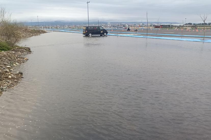 Sürücü adayları, oluşan su birikintileri nedeniyle direksiyon eğitimlerinde ciddi zorluk yaşadı. Bazı bölgelerde su seviyesinin araç kullanımını tehlikeye sokacak düzeye ulaştığı görülürken, yaşananlar cep telefonu kameralarıyla kaydedildi. Görüntülerde, eğitim pistlerinin büyük bölümünün suyla kaplandığı dikkat çekti.