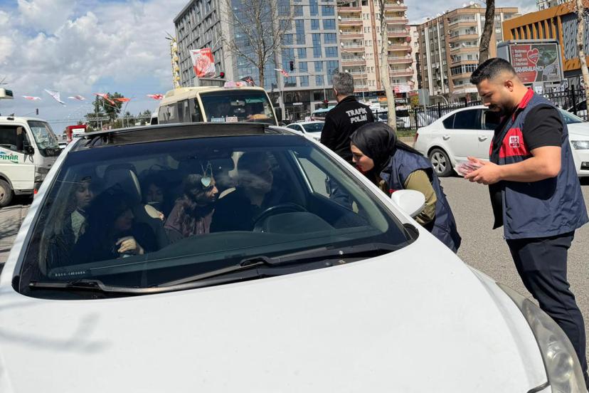Emniyet personelleriyle birlikte Batman Park noktasında trafik uygulaması yapan ekipler, durdurulan araçlardaki sürücü ve yolculara 112 sistemi hakkında birebir bilgilendirme yaptı.