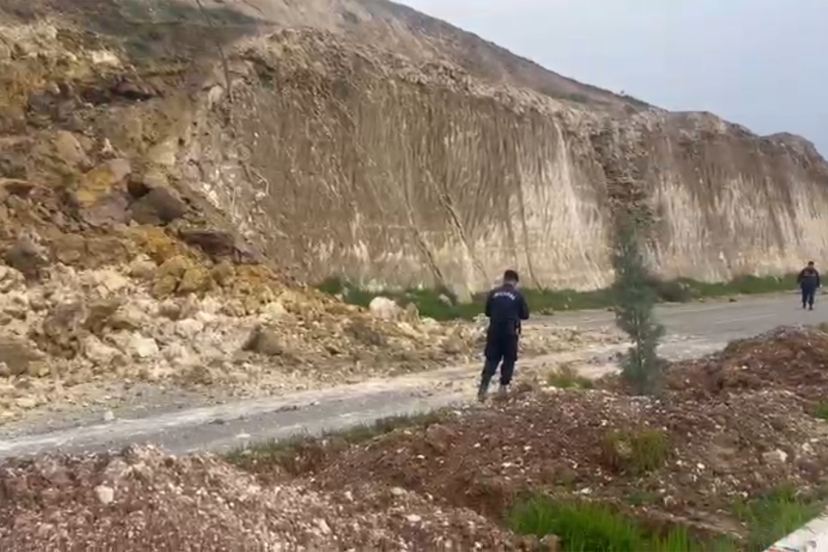 Batman'da Üniversite ile Emekli TOKİ arasındaki yolda meydana gelen toprak kayması sonrası jandarma ekipleri bölgede güvenlik önlemi alarak sürücüleri uyardı.
