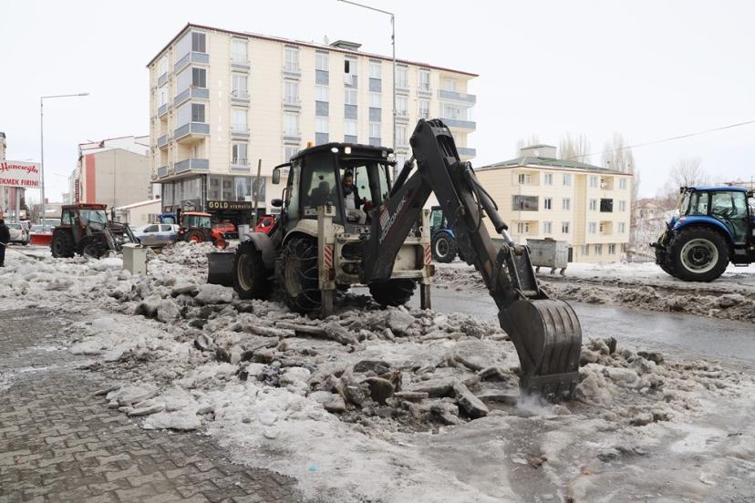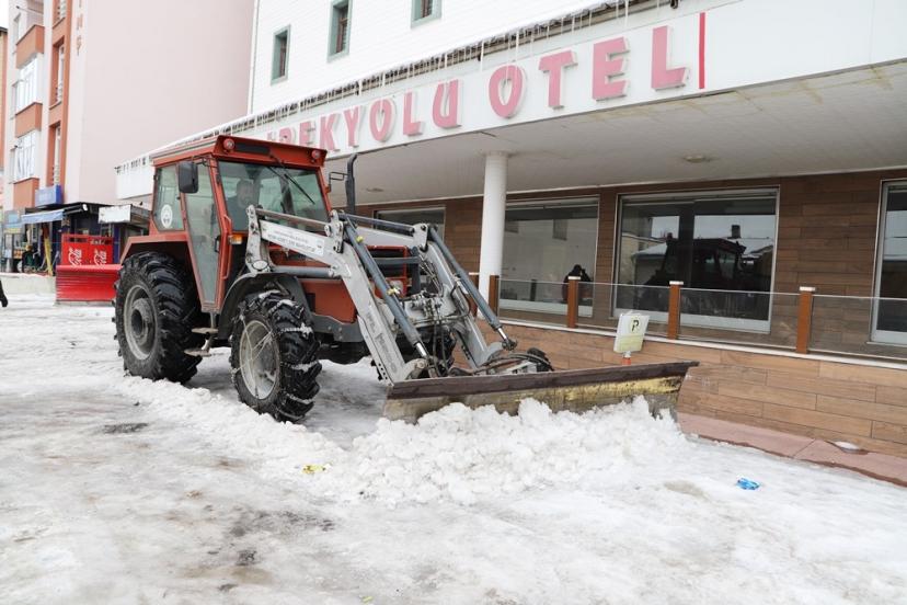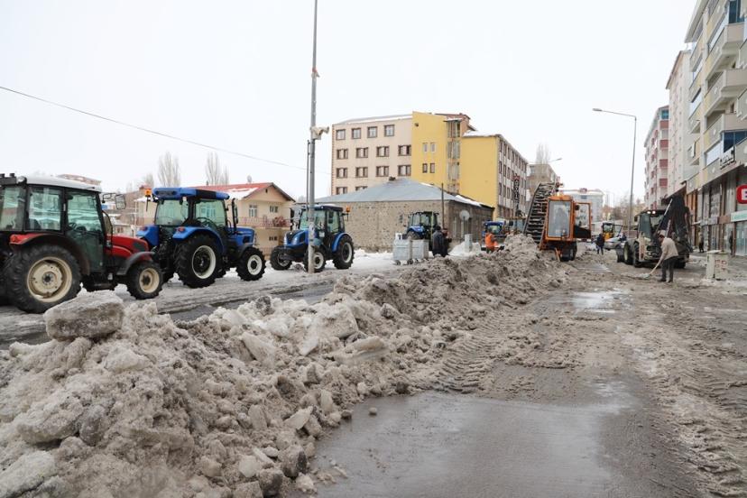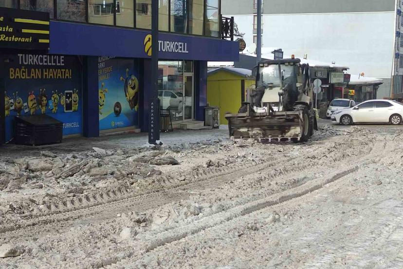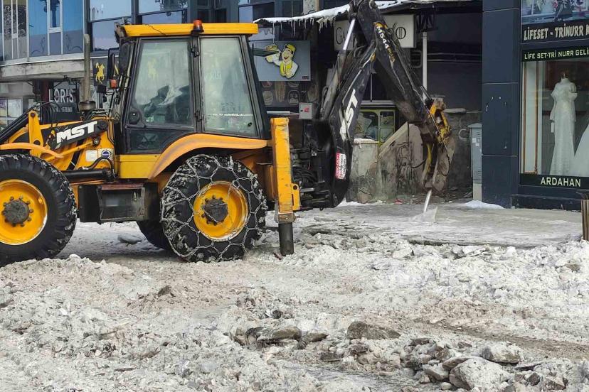 Ardahan Belediyesi karla mücadele ekipleri, kent merkezindeki yoğun kar temizleme mesaisine aralıksız devam ediyor. Ekiplerce yol kenarları ile kaldırımlarda temizlenen kar ve buz kütleleri, kamyonlarla şehrin dışına taşınıyor.