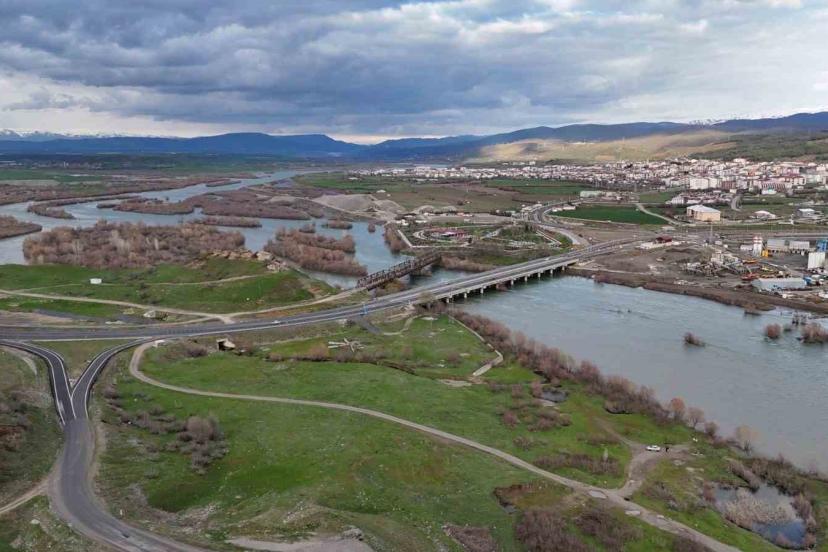 Bingöl’de karların erimeye başlaması ve devam eden yağışlarla birlikte il sınırlarından geçen Murat Nehri’nde debi yükseldi. Tarihi köprüyle birlikte oluşan eşsiz manzara havadan görüntülendi.