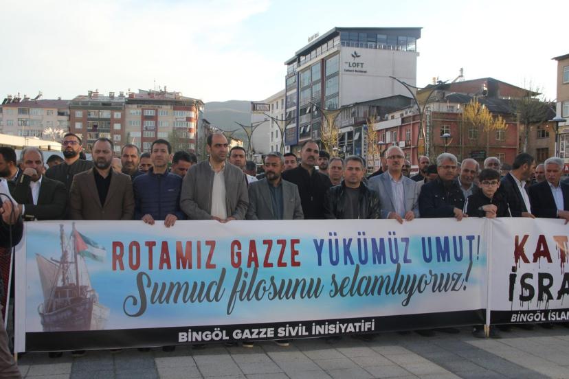 Gazze'deki insanlık dışı ablukayı kırmak amacıyla yola çıkan Küresel Sumud Filosu'na uluslararası sularda düzenlenen korsan saldırı ve aktivistlerin alıkonulması, Bingöl’de protesto edildi.