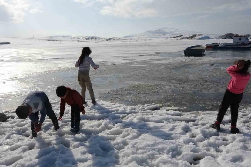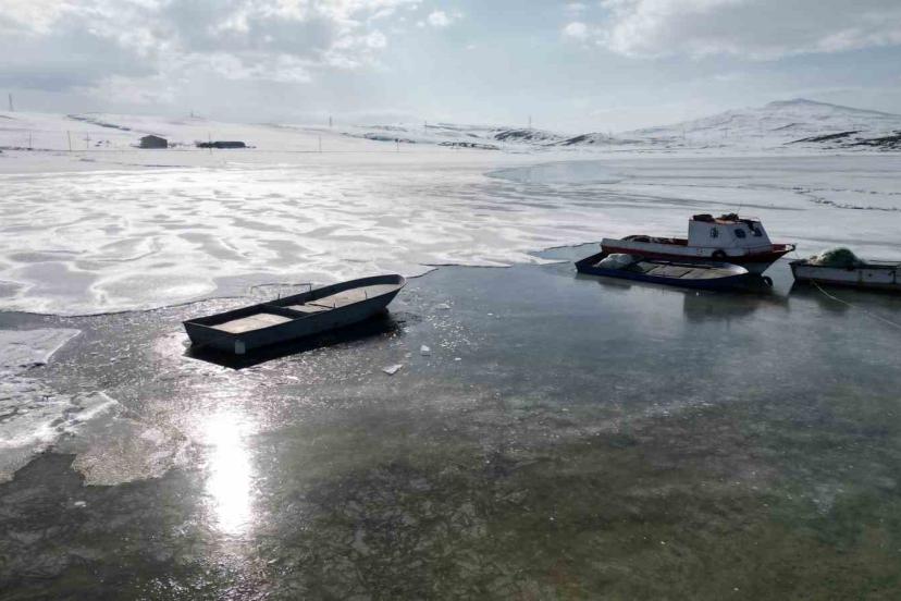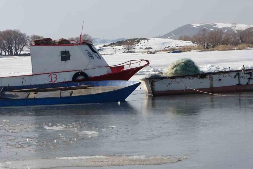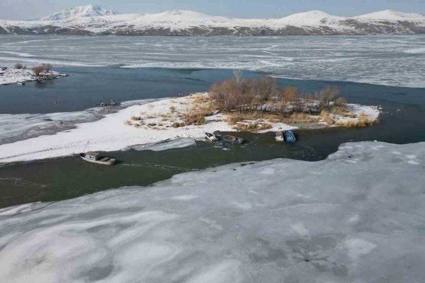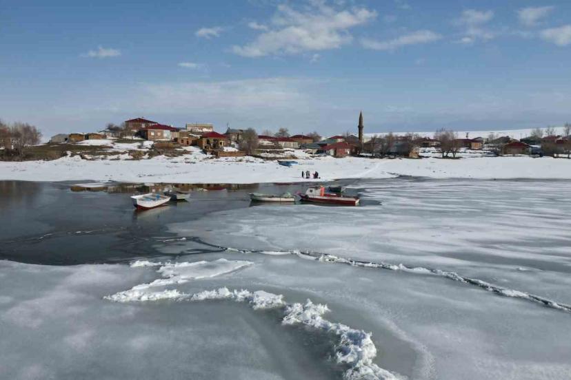 Kış aylarında şiddetli soğuklarla 40 santimetre kalınlığında buz tutan gölün yüzeyi mart ayının yaklaşmasıyla çözülmeye başlıyor. Göl yüzeyindeki buz tabakasının çözülmesiyle birlikte büyük kütleler halinde göl yüzeyinde yüzen buz parçaları ve arasında avlanmaya çalışan balıkçı tekneleri, seyrine güzel görüntüler oluşturdu.