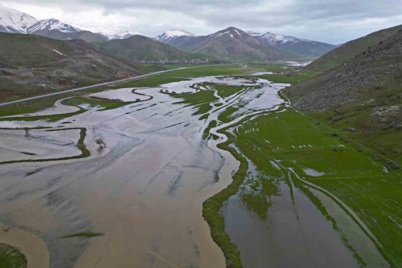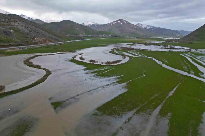 Bitlis’in Tatvan ilçesinde yer alan doğa harikası Güzeldere Menderesleri, uzun süren sağanak yağışların ardından sular altında kalarak adeta doğal bir göle dönüştü.