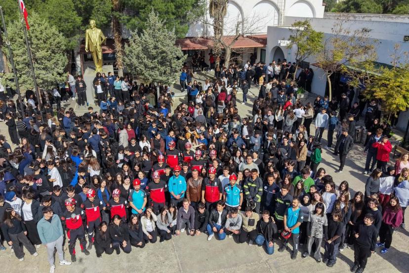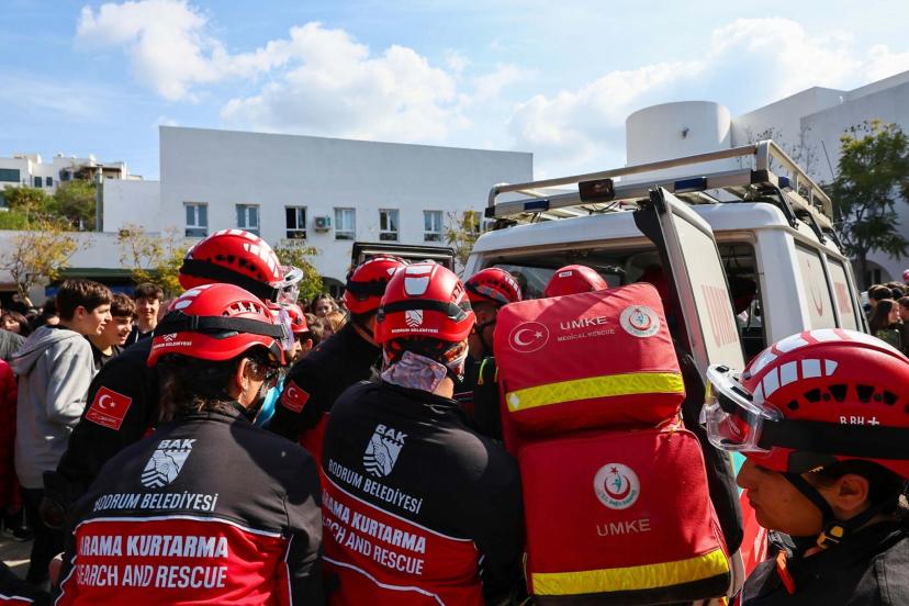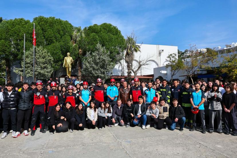 MUĞLA'nın Bodrum ilçesinde, 1-7 Mart Deprem Haftası farkındalık etkinlikleri kapsamında lisede deprem tatbikatı düzenlendi.