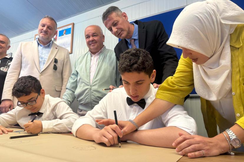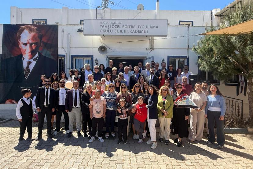 Yahşi Özel Eğitim Uygulama Okulu, özel bir kolej ve Bodrum Beşiktaşlılar Derneği iş birliğiyle düzenlenen 'Çocuk Şenliği ve Resim Atölyesi Açılışı' renkli görüntülere sahne oldu. Yahşi Özel Eğitim Uygulama Okulu bahçesinde gerçekleştirilen etkinliğe; Bodrum İlçe Milli Eğitim Müdürü Özcan Kuşcu, Bodrum Belediye Başkan Yardımcısı Tanju Aksu, MHP Bodrum İlçe Başkanı Engin Galipoğlu ve Okul Müdürü Cengiz Vural'ın yanı sıra çok sayıda öğretmen, öğrenci ve veliler katılım sağladı. Saygı duruşu ve İstiklal Marşı ile başlayan programda, okul müdürlerinin açılış konuşmalarının ardından projeye destek verenlere teşekkür plaketleri takdim edildi. Etkinliğin en dikkat çeken anlarından biri, özel gereksinimli öğrencilerin kolej öğrencileriyle birlikte sergilediği vals gösterisi oldu. Programın devamında sergilenen Zeybek oyunu ve özel öğrencilerin hazırladığı 'Beyaz Kelebekler' gösterisi izleyicilerden büyük alkış topladı. Gösterilerin ardından protokol üyeleri, öğrencilerin hazırladığı resim sergisini gezerek Görsel Sanatlar ve Resim Atölyesi'nin resmi açılışını gerçekleştirdi. Kurdele kesiminden sonra atölyeyi inceleyen protokol üyeleri, şövalelerin başına geçerek öğrencilerle birlikte resim yaparak bu anlamlı günü ölümsüzleştirdi.