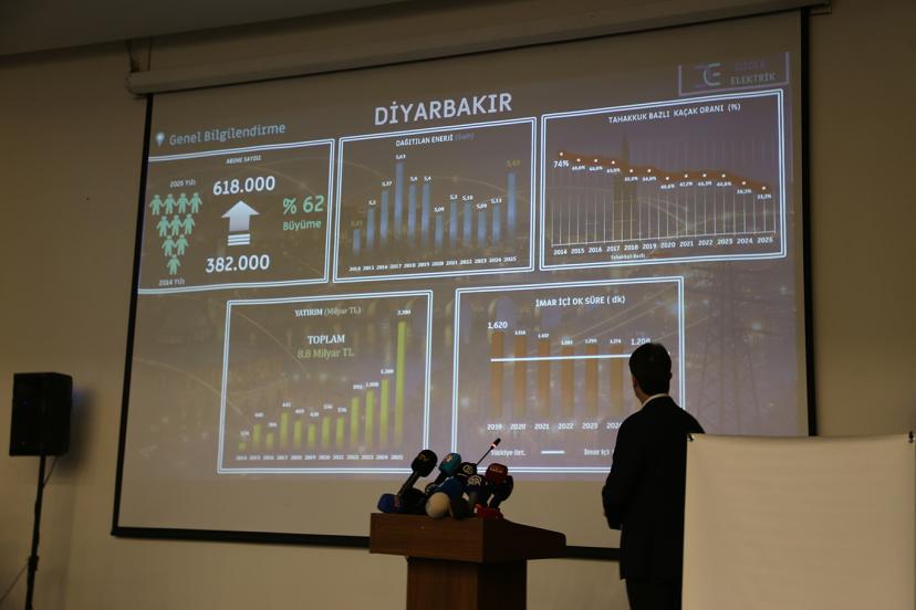 Dicle Elektrik tarafından Diyarbakır’da düzenlenen basın toplantısında 2025 yılı yatırımları, altyapı ve dijital dönüşüm çalışmaları paylaşıldı. Basın toplantısında, bölgedeki enerji hedefleri detaylı olarak aktarıldı.