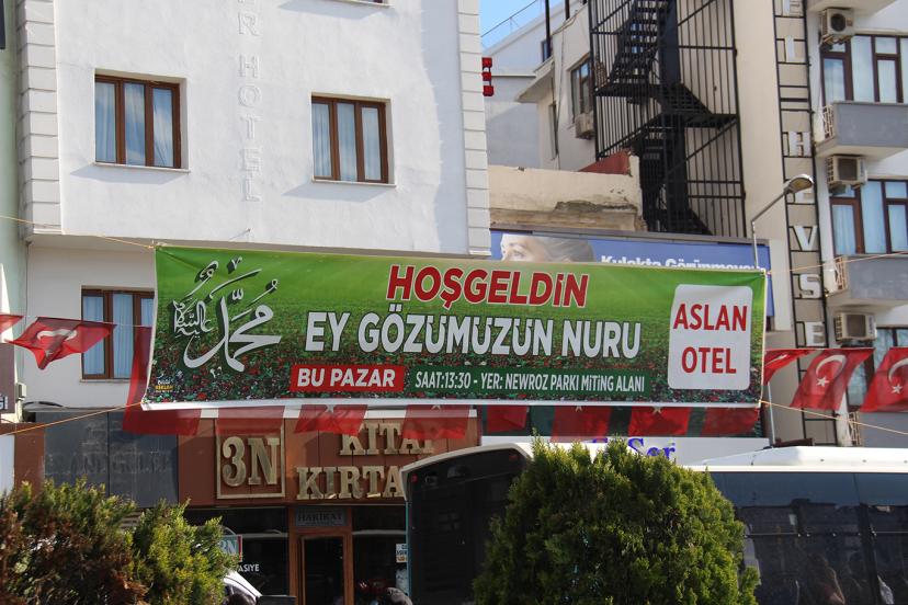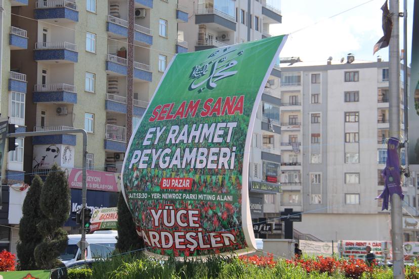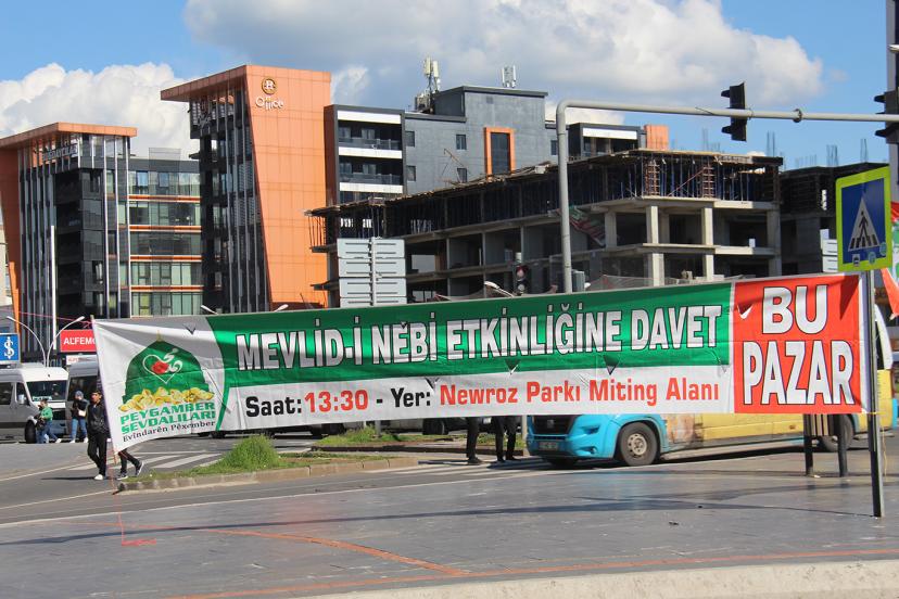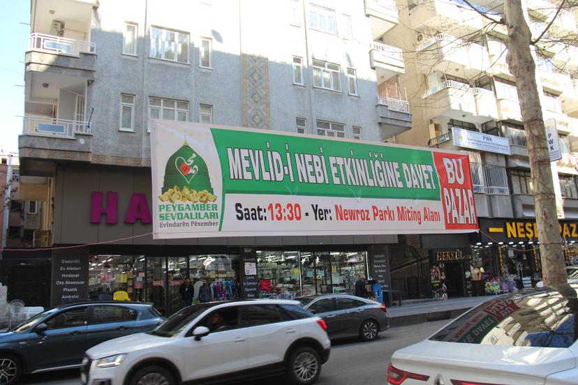Hafta sonu Diyarbakır'da gerçekleştirilecek Mevlid-i Nebi etkinliğine ilişkin duyuru brandaları kentin farklı noktalarına asılmaya başlandı.