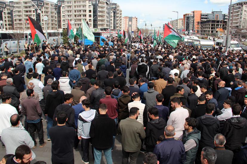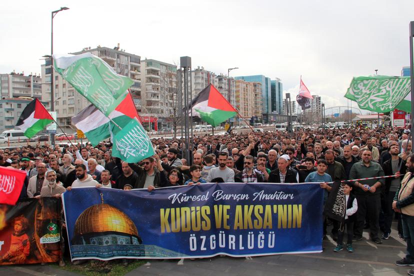 Peygamber Sevdalıları Vakfı öncülüğünde Diyarbakır’da bir araya gelen binlerce kişi, işgal rejiminin Filistinli esirlere yönelik idam kararı ve Mescid-i Aksa’da namaz kılınmasına getirilen engellemeleri protesto etti.