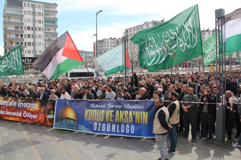 İşgal rejiminin Mescid-i Aksa’da namaz kılınmasına yönelik engellemeleri protesto etmek amacıyla Diyarbakır’da bir araya gelen vatandaşlar, söz konusu uygulamaların kabul edilemez olduğunu vurguladı.