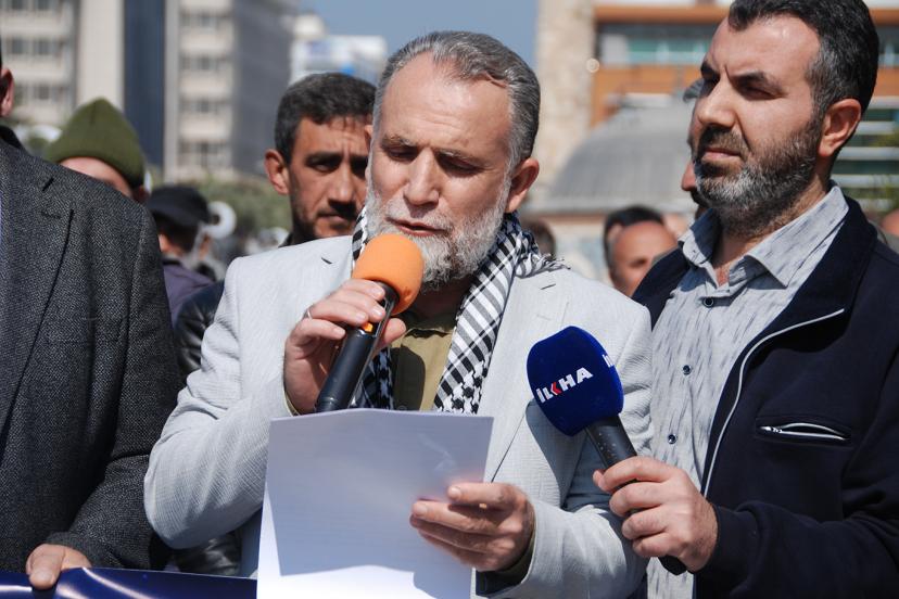 Basın açıklamasını, Peygamber Sevdalıları Vakfı İzmir Derneği Başkanı Mehmet Arap Akgül okudu.