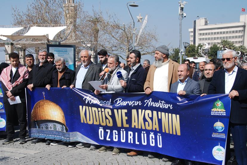 Peygamber Sevdalıları Vakfı İzmir Derneği, “Küresel Barışın Anahtarı Kudüs ve Mescid-i Aksa'nın Özgürlüğüdür” başlığıyla Dünya Kudüs Günü dolayısıyla basın açıklaması düzenledi.
