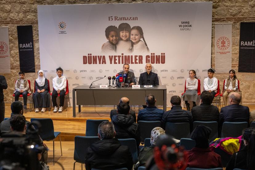 Yetim Vakfı ve İHH İnsani Yardım Vakfı tarafından Rami Kütüphanesi'nde gerçekleşen basın toplantısına, sivil toplum kuruluşu yetkilileri ve farklı coğrafyalardan yetim çocuklar katılım sağladı.