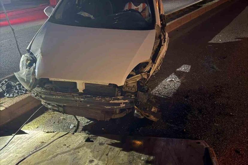 Elazığ’da sürücüsünün direksiyon hakimiyetini kaybettiği otomobil yan yattı, 1 kişi yaralandı.