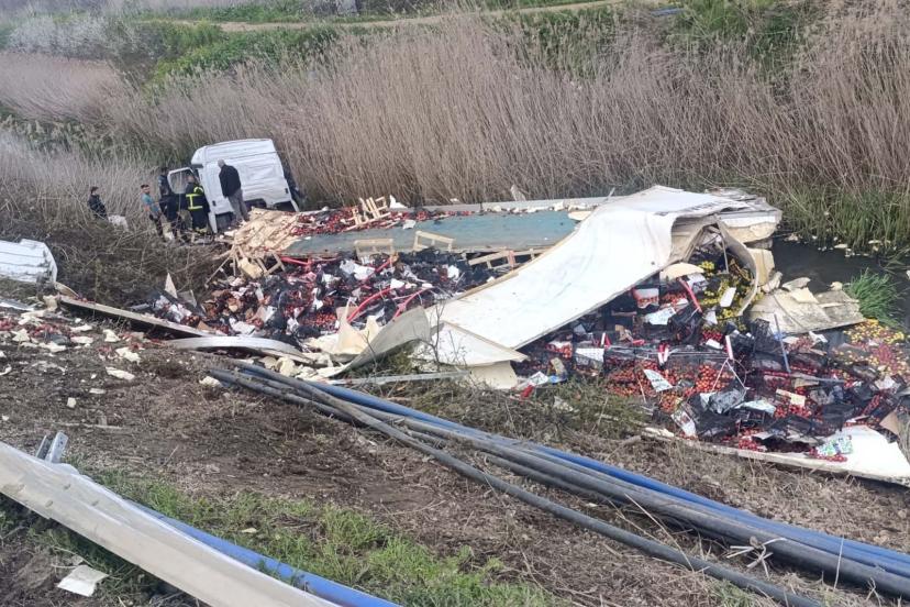 Elma yüklü çekici kanala devrildi: 1 yaralı