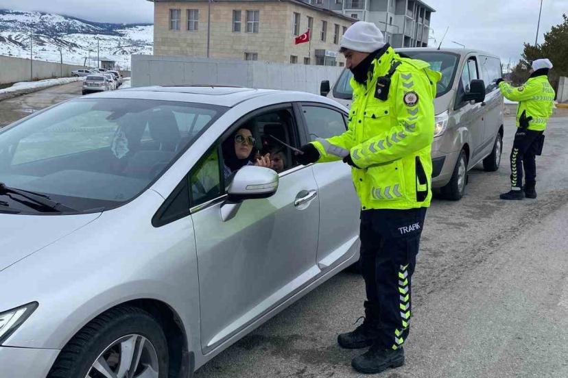 Denetimlerde, trafik kural ihlallerinin en aza indirilmesi ve kazaların önlenmesi amacıyla sürücülere çeşitli uyarılarda bulunulurken, yol kullanıcılarına broşür dağıtıldı.