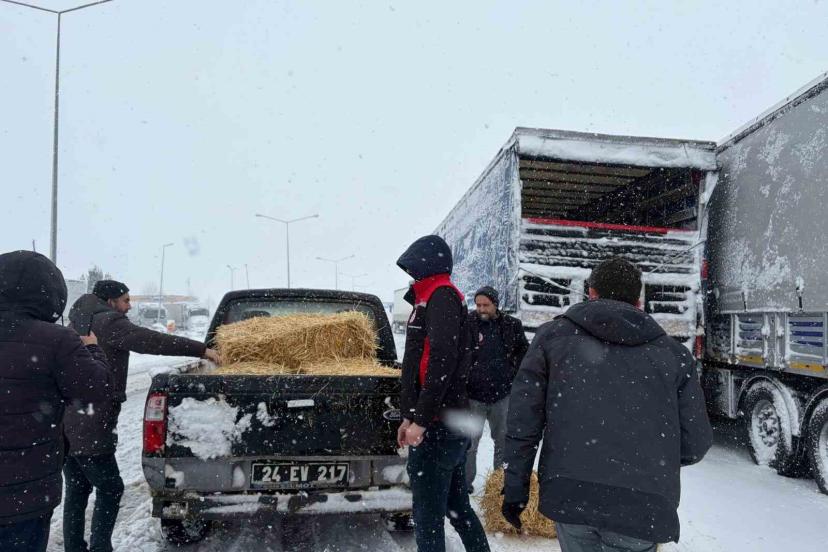Erzincan’da etkili olan yoğun kar yağışı nedeniyle yolda mahsur kalan 200 büyükbaş hayvana Tarım ve Orman İl Müdürlüğü ekiplerince yem takviyesi yapıldı.