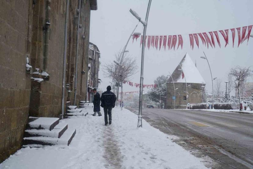 Erzurum’da dün gece saatlerinde başlayan kar yağışı etkili olmaya devam ediyor. Kent merkezinde okullar bir gün tatil edildi.
