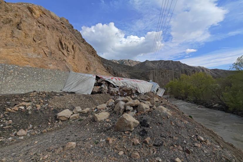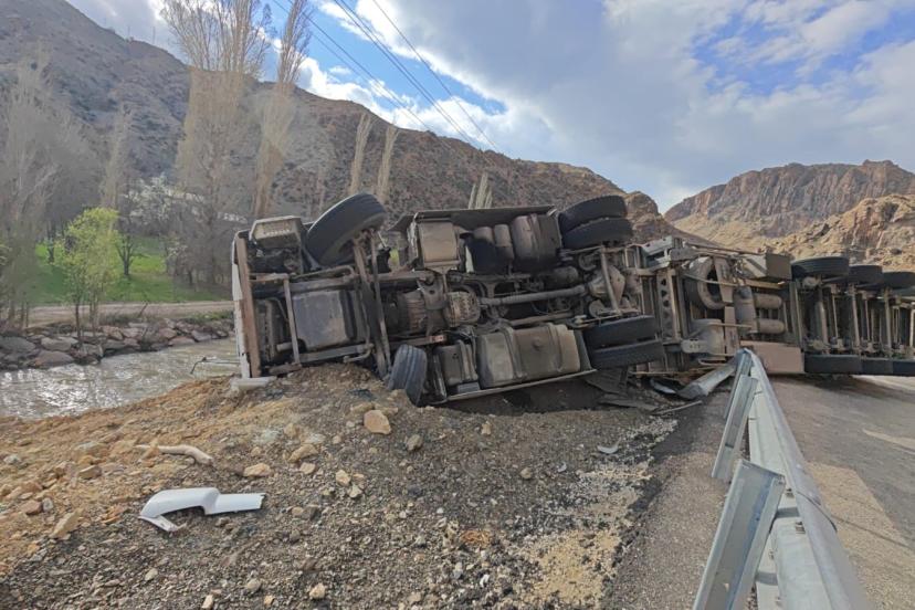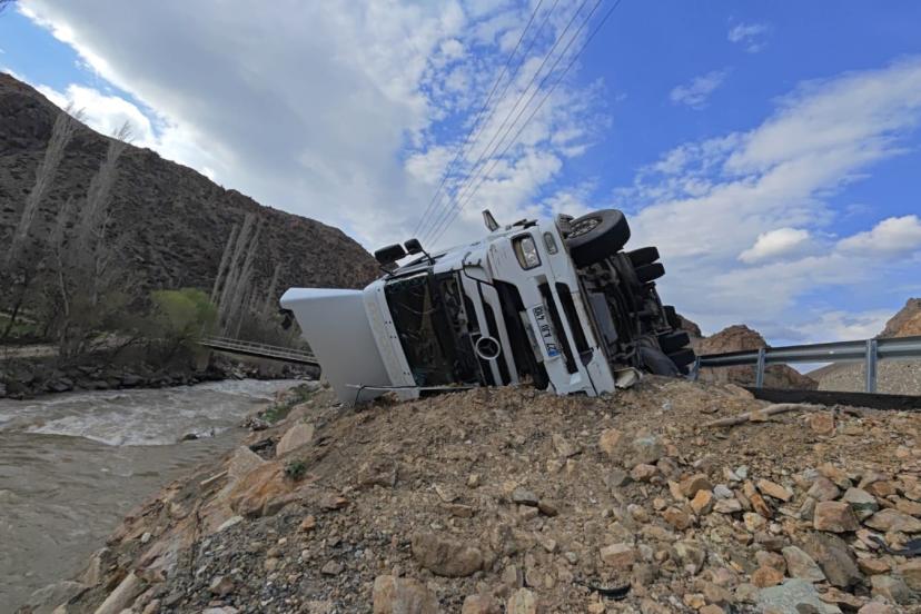 Edinilen bilgilere göre, atık kağıt yüklü tır sürücüsü, keskin virajı alamayarak direksiyon hakimiyetini kaybetti. Kontrolden çıkan araç bariyerleri aşarak yan yattı. Tırın, hemen yanı başından geçen Tortum Çayı’na uçmasına ise metreler kala durması muhtemel bir faciayı önledi.