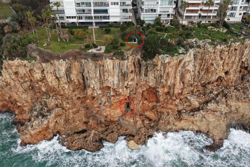 O dönem Muratpaşa Kaymakamlığı'ndan yapılan açıklamada, Konyaaltı Caddesi’nde falezler deniz kısmından kayalıklara açılan bir mağara ve mağaraya ait demir kapı üzerinde kamera olduğunun görülmesi sonrası başlatılan incelemede, mağaranın yaklaşık 40 sene önce inşa edildiği ve mağaradan denize asansör ile inilebildiğinin belirlendiği ifade edildi. Ayrıca mağaranın içerisinde merdivenin de olduğu da kaydedildi.