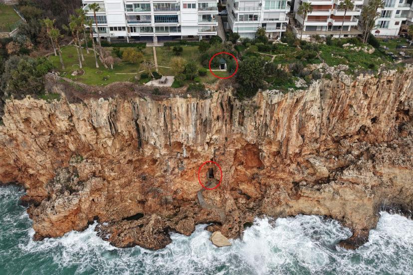Öte yandan Muratpaşa Belediyesi'ne ait Engelsiz Kafe'nin olduğu alanın altındaki falezlerde tespit edilen, odacıklardan oluşan ahşap baraka ile ilgili incelemelerin devam ettiği belirtildi.