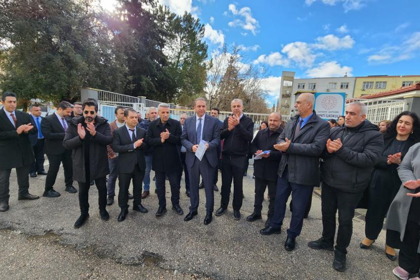 Okul önünde yapılan ortak basın açıklamasına; Türk Eğitim-Sen Gaziantep 1 Nolu Şube Başkanı İsmail Hakkı Elmas, Gaziantep 2 Nolu Şube Başkanı Salih Bildirici, Eğitim Bir-Sen Gaziantep Şube Başkanı Hulusi Gürbüz, Eğitim-İş Gaziantep Şube Başkanı Ali Arpat, Eğitim-Sen Gaziantep Şube Başkanı Ömer Parlakçı ile Hürriyetçi Eğitim-Sen Şube Başkanı Ali Canlı ve sendika yöneticileri katıldı.
