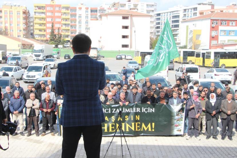 Bilgiç, Gazze’de binlerce çocuğu şehit eden işgal rejimi, İran’da da 160’tan fazla kız çocuğunu füzelerle katlettiklerini söyleyerek “Üç yıldan fazladır, katil ABD ve vahşi siyonistler; Gazze’de yüzyılın en büyük soykırımını gerçekleştirdiler. Çocukları açlıktan, susuzluktan, ilaçsızlıktan ölüme mahkum ettiler. Halen Gazzeli Müslümanlara yönelik en acımasız bir şekilde vahşi saldırılar devam ettirilmekte, dünyanın gözü önünde çocukların açlıktan ölmesi için ablukayı gaddarca sürdürmektedirler. Bir haftadan bu yana, bu katiller sürüsü İran’ı en vahşi şekilde bombalamaktadırlar. Sadece bir ilkokulda 160’tan fazla kız çocuğunu füzelerle katlettiler. İslam Cumhuriyeti liderini ve genelkurmay başkanı da dâhil olmak üzere binlerce Müslümanı şehid ettiler. Bu vahşi saldırılar halen devam etmektedir. Bütün bir İslam coğrafyasını; siyonist işgalcilerin güvenliğini bahane ederek kan gölüne çevirdiler. Çıkardıkları kaos ve kargaşalarla milyonlarca Müslümanı evinden yurdundan ederek mülteci durumuna düşürdüler. Biz biliyoruz ki, zulüm burada durmayacak, yeni işgal ve katliamlarla siyonist barbarların güvenliği bahane edilerek milyonlarca Müslümanın kanı akıtılacaktır.” ifadelerini aktardı.