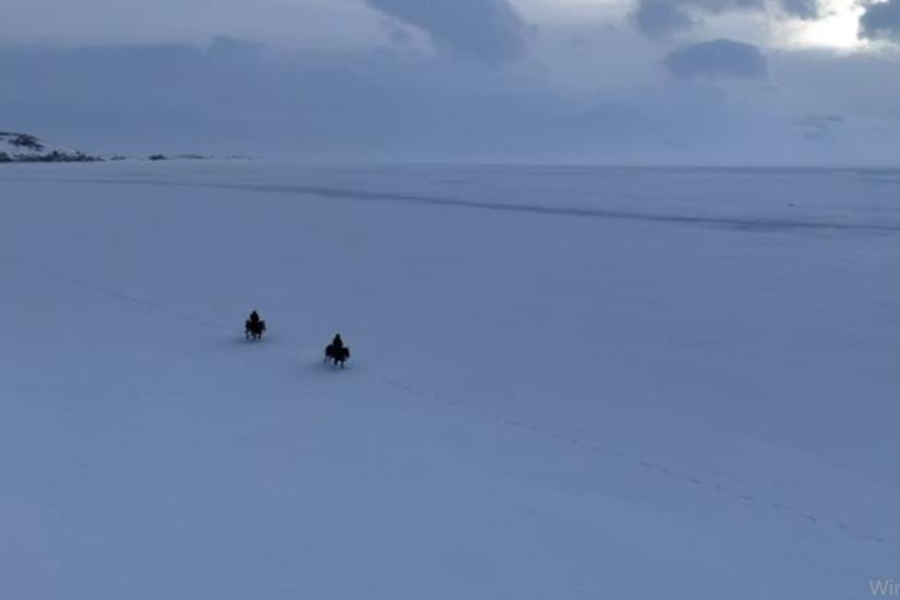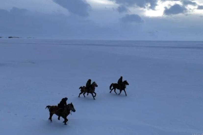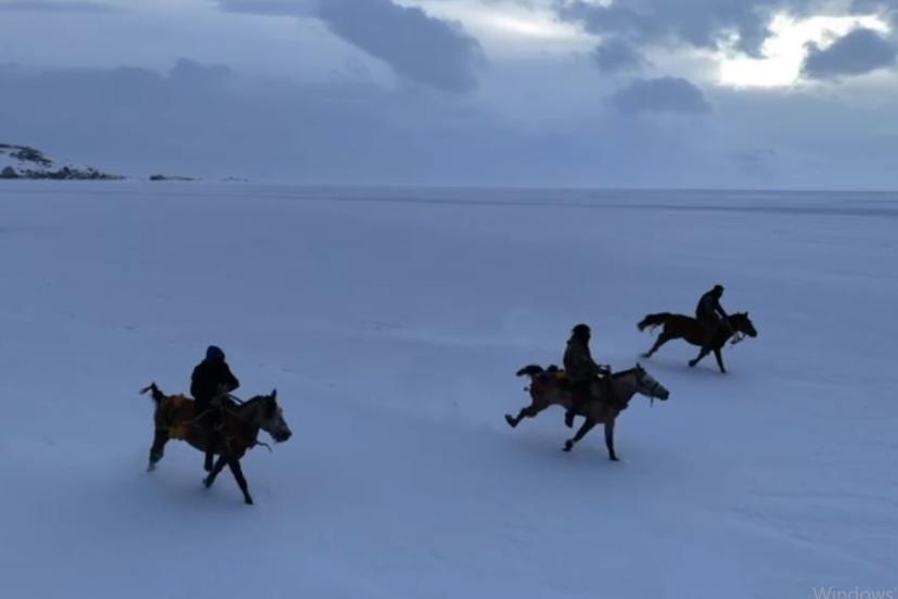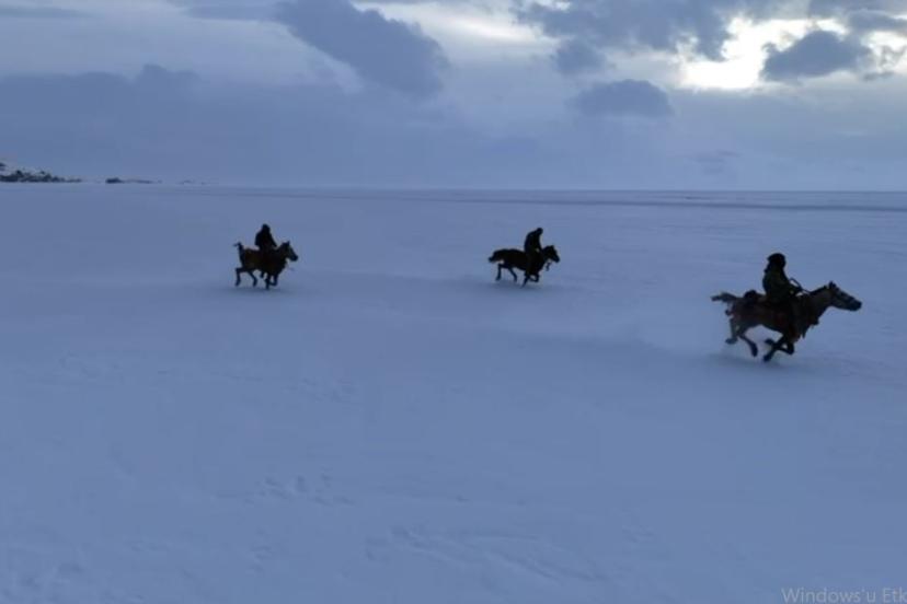 Çıldır Gölü’nde kışın büyüleyici atmosferi bir kez daha dikkat çekti. Yüzeyi tamamen donan gölün üzerinde atlarına binen gençler, dörtnala koşarak adeta doğayla iç içe nefes kesen anlara imza attı.