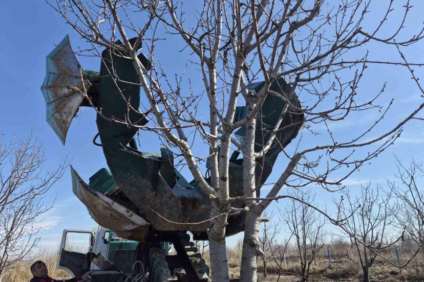 "2025 yılı içerisinde, kooperatifimizin yan tarafında abime ait bir kiraz bahçesi vardı. Abim, kiraz bahçesindeki ağaçları keserek yerine başka ürünler ekmek istedi. Ben ise bu kiraz ağaçlarının 15-16 yıllık olduğunu ve meyve ağaçlarının kesilmemesi gerektiğini kendisine belirttim. Abim de ’Ben keseceğim, istersen sana vereyim, ne yapıyorsan yap’ dedi. Daha sonra bu ağaçları nasıl taşıyabileceğimizi düşünmeye başladım. Araştırma yaptık, dünyada insanların bu işi nasıl yaptığını inceledik. Türkiye’de pek örneğine rastlayamadık ancak yurt dışında örnekleri vardı. Ağaç taşıma makinesinin ilimizde olmadığını öğrendik, ancak Kars Belediyesinde bulunduğunu tespit ettik. Bu vesileyle, Kars Belediye Başkanı Prof. Dr. Ötügen Senger’e sonsuz teşekkürlerimizi iletmek isteriz. Kendisine müracaat ettik ve talebimizi olumlu karşıladı. Bize yardımcı olarak makineyi temin etti. Ayrıca Melekli Belediye Başkanı Mücahit Bey’e de katkılarından dolayı teşekkür ederim."
