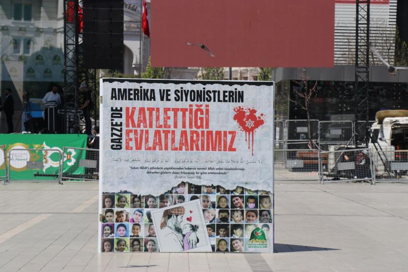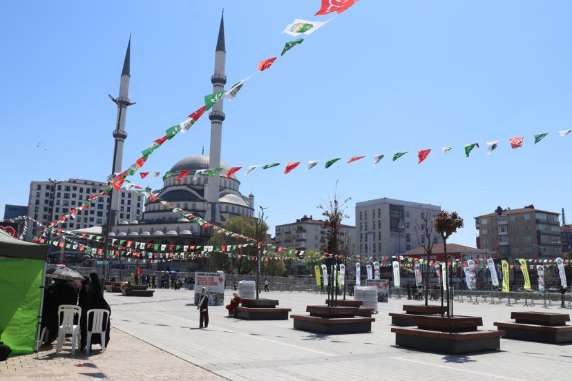 Dünden bu yana hazırlıkların devam ettiği Bağcılar Meydanı'nda sahne kurulup süslendi. Kutlu sevda için halkın misafir edileceği meydan ise "ABD ve siyonistlerin Gazze'de katlettiği evlatlarımız" yazısıyla minik şehitlerin fotoğrafları ile "ABD ve siyonistlerin İran'da katlettiği evlatlarımız" yazısıyla da İran okul saldırısında şehit edilen çocukların fotoğrafları ile süslendi