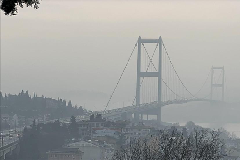 Boğaz hattı boyunca etkisini sürdüren sis tabakası havadan da görüntülendi. Dev yapının tamamen sis altında kaldığı gözlendi.