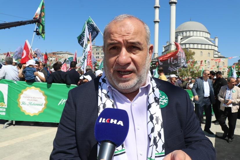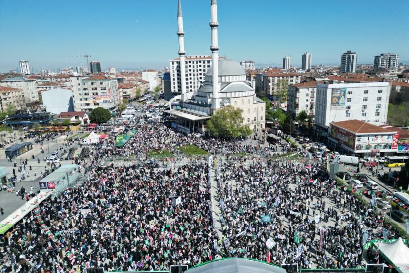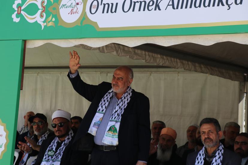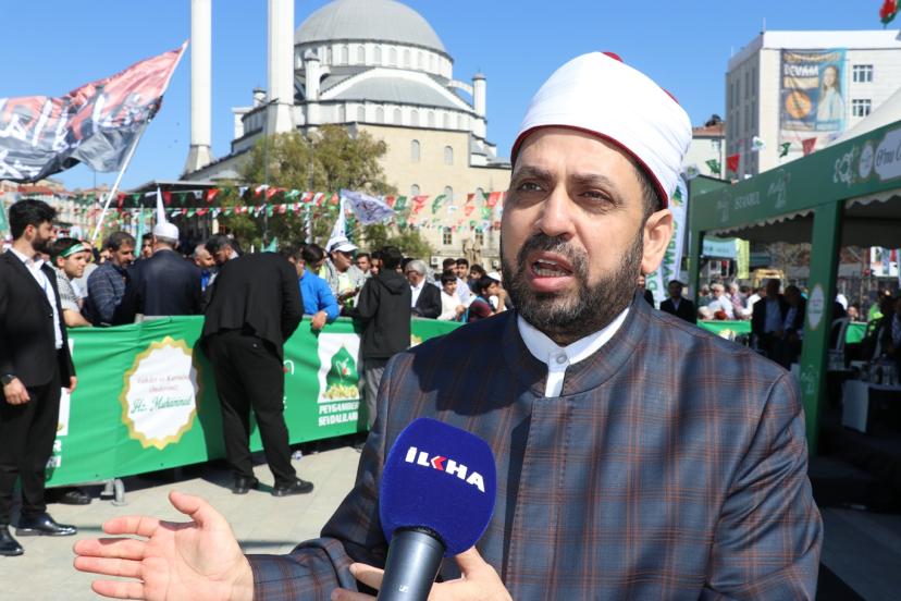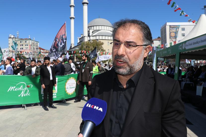 "Bugün, Peygamber Efendimizin (Sallallahu Aleyhi ve Sellem) mevlidi vesilesiyle düzenlenen bu etkinlikteyiz. Bu öyle yüce bir hatıradır ki Türkiye halkı Peygamber Efendimizi (Sallallahu Aleyhi ve Sellem) daima zikirle anmak için bugünü hem Hicri hem de Miladi takvime göre kutlayarak bu konuda ayrıcalıklı bir yere sahip olmuştur. Gerçekten muazzam ve devasa bir organizasyon. Meydanları dolduran bu kalabalık, Peygamber sevgisinin tüm Türkiye halkının kalbinde ne kadar derin köklere sahip olduğunun mesajını veriyor. Bu duyguyu yok etmeye ya da azaltmaya yönelik tüm çabalar boşa çıkmış, bu tablo tüm dünyaya Peygamber Efendimizin (Sallallahu Aleyhi ve Sellem) Türkiyelileri, Müslümanların ve Peygamberini seven her insanın kalbindeki sarsılmaz makamını göstermiştir. Resulullah’ı anmak, O’nun sünnetine sarılmakla, O’nu savunmakla, Müslümanları savunmakla, İslam topraklarını ve Müslümanların mukaddesatını her yerde korumakla olur. Allah Teâlâ’dan Türkiye ve tüm İslam beldeleri için hayırlar yazmasını, Mescid-i Aksa’yı ve işgal altındaki tüm İslam topraklarını özgürlüğüne kavuşturmasını niyaz ediyoruz."
