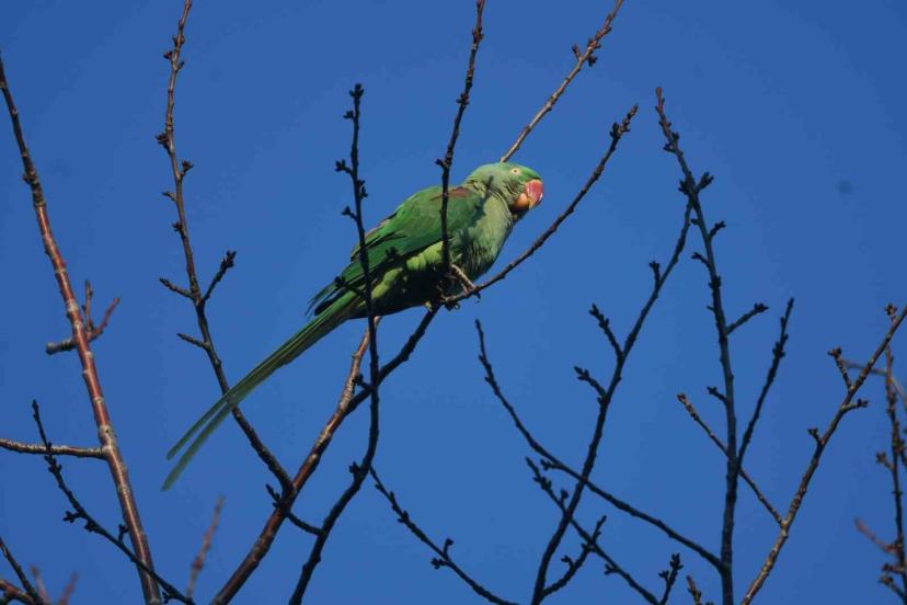 Bitlis’in Tatvan ilçesinde istilacı olarak bilinen yeşil renkli İskender Papağanı görüntülendi.